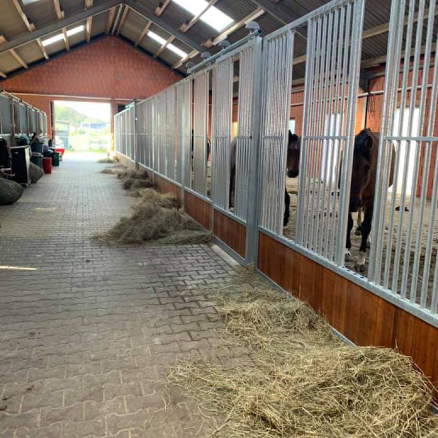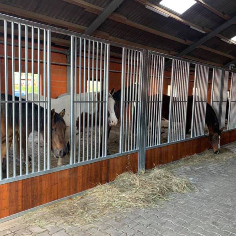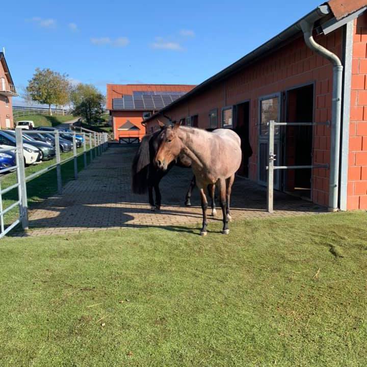Im letzten Jahr haben wir unseren großen Laufstall fertig gestellt. Die Wallache haben hier eine halbe Stallgasse überdacht und mit freier und fester Bewegungsfläche zur Verfügung. Wenn Sie sich also mehr Bewegung für Ihr Pferd wünschen, kann unser Laufstall eine gute Alternative zu der Boxenhaltung sein.